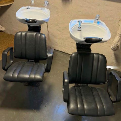 Frisør vaskestol , med beslaget til vaskeskjold.