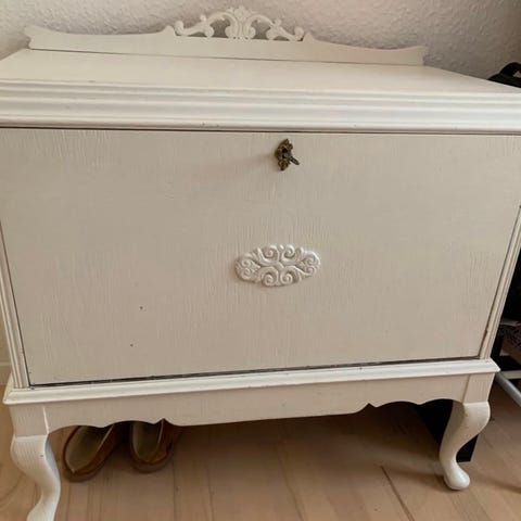 Rigtig fin gammel kommode/skænk/skab med udskæringer og svungne ben. Åbnes med nøgle. Fejler intet