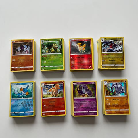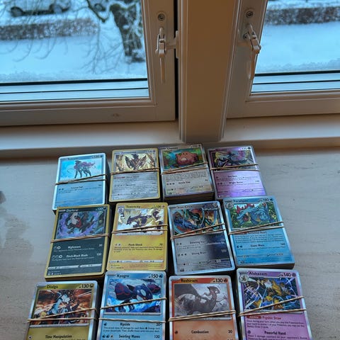 Der er 100 kort i en bunke inklusiv 10 holo/reverse holo kort.