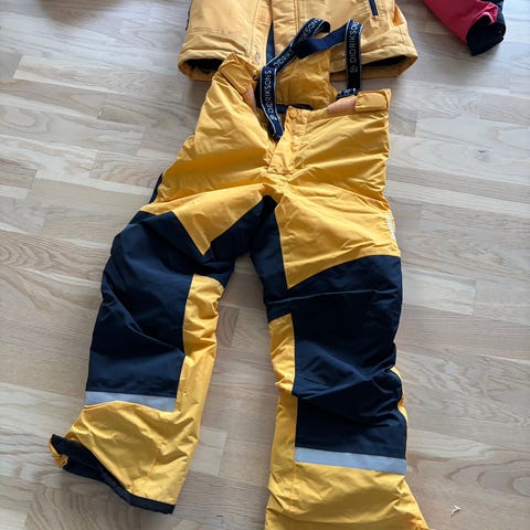Lækker blå Didriksons jakke st. 130. Brugt en skisæson. Har seler indeni så man kan have den hængende når man er i varmestuen. Brugt på en ski tur. Rigtig god stand.