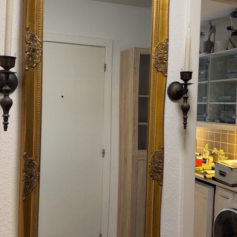 Spejl, Ukendt, Fedt spejl sort ramme højde 90 cm bredde 69