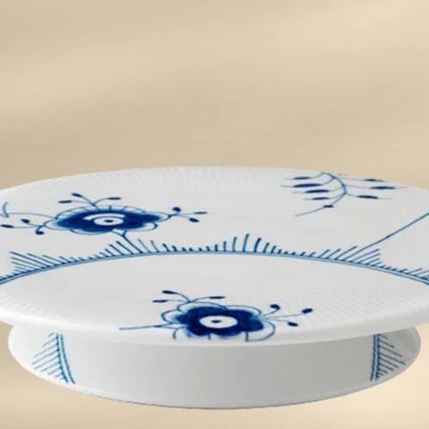 Royal Copenhagen kagefad med fod i porcelæn. Designet med klassiske blå dekorationer. Velegnet til servering af kager og bagværk.