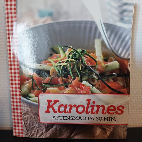 “Karolines aftensmad på 30 min”, som ny, med mange spændende retter.