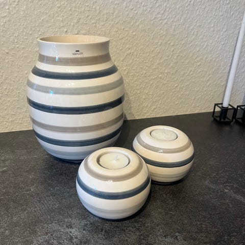 Kähler Striped Keramikvaser og Skål i Flere Farver
