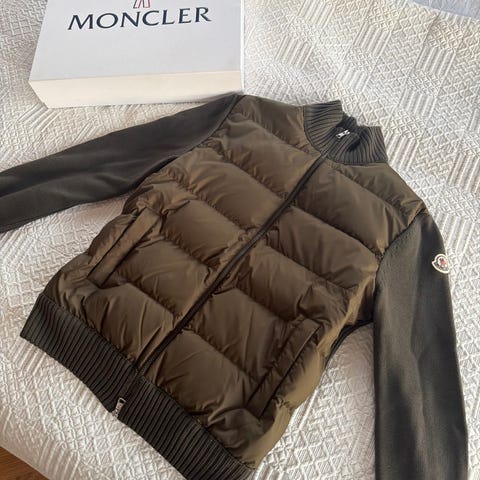 Sælger en original Moncler cardigan/hybridjakke i str. Medium, helt ny og ubrugt. Kvittering medfølger, så ægtheden er dokumenteret.