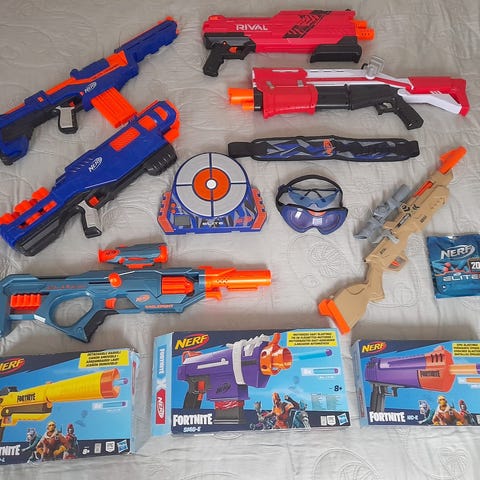 • Nerf X Fortnite rocket launcher. Rigtig fin stand. Der medfølger 5 skud, som ikke har “vingerne” mere, men kan fortsat fint bruges. 150 kr.