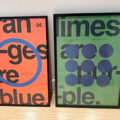 3 stk. moderne grafiske plakater m. egetræsrammer