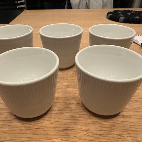 4 stk. hvid riflet kopper med hank