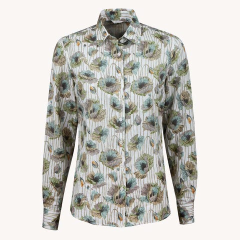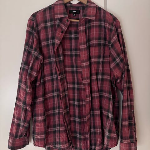 Blusen har print med Stüssy-logo på bagsiden og lille logo på front.