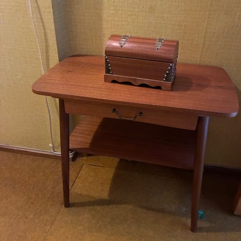 Ægte teaktræ sengegavl 180cm bred og 95cm høj og 2 stk. sengeborde 50x50cm og 50cm høj
