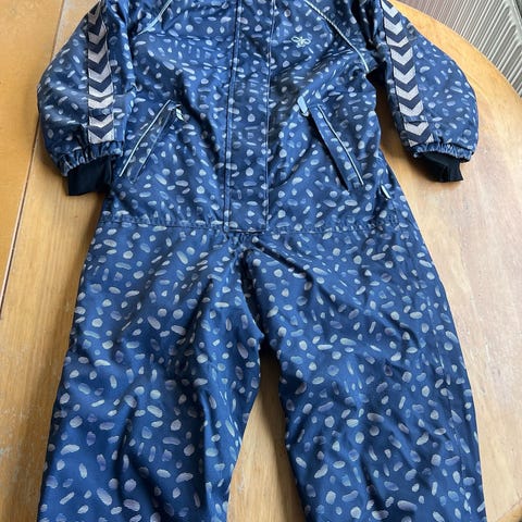 Lækker Hummel flyverdragt i god kvalitet. Blå med hvide prikker. Næsten ikke brugt. Med Hummeltex membran der gør dragten vandtæt og åndbar