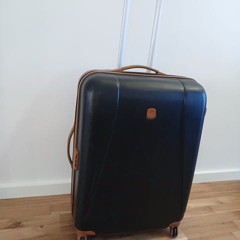 BRIC's letvægts kabine kuffert. Hardcase i armygrøn farve med cognacfarvet læder på bl.a. håndtag. Foret indvendig. Flot stand.