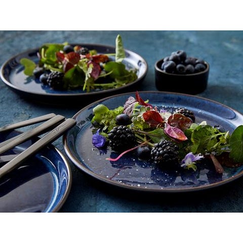 BYD - Sæt af stentøjstallerkener – blå glasur – retro / hverdagsstel