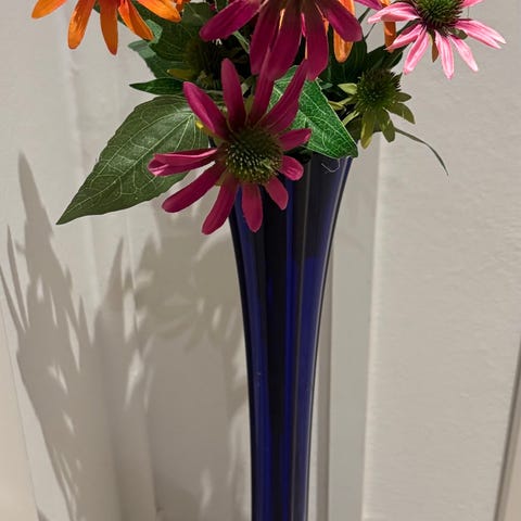 Vasen har en cylindrisk form med en smal åbning og er velegnet til dekorative formål i hjemmet.
