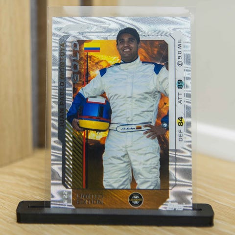 Limited Edition Gold kort fra 2025 i flot stand. Kortet sendes i Ultra Pro sleeve og toploader, som er inkluderet i prisen. Ideelt til F1-fans og samlere.