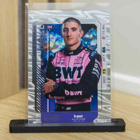 Limited Edition Aquamarine kort fra 2025 i flot stand. Kortet sendes i Ultra Pro sleeve og toploader, som er inkluderet i prisen. Ideelt til F1-fans og samlere.