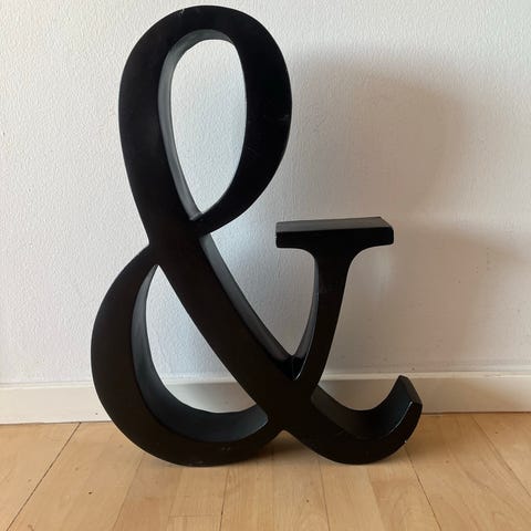 Hvid &-tegn dekoration i stort format med sort inderside. Velegnet til brug som dekorativt element i hjemmet eller til events.