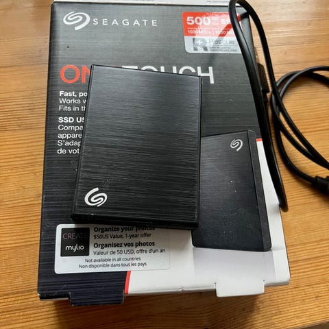 Disken er monteret i et kompakt USB 3.0-kabinet med medfølgende USB-kabel, klar til brug på Windows, Mac og Linux.