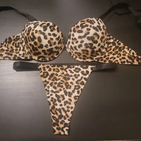 Flot ubrugt leopard bh uden stropper eller indlæg, med sølv glitter og teksten fashion på