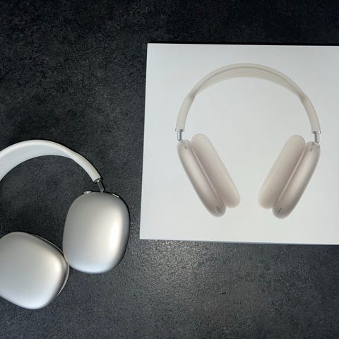 Apple AirPods Max over-ear hovedtelefoner i sort farve. Hovedtelefonerne har polstrede ørepuder og et justerbart hovedbånd. Designet til at give lydoplevelse med høj kvalitet og komfort.