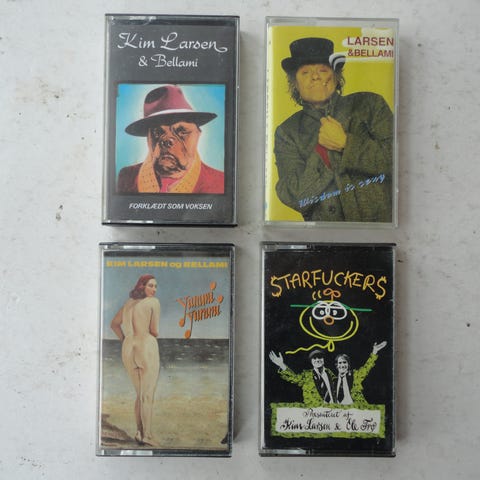 4 forskelige kassettebånd , pris per styk 30 KR