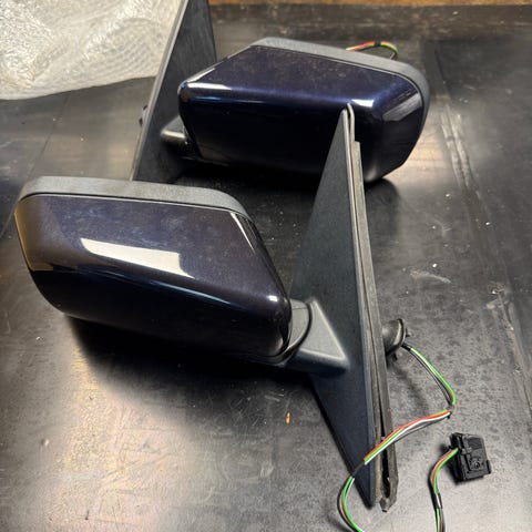 BMW sidespejle i sort farve. Sidereservedele til bil, designet til at passe til specifikke BMW-modeller.