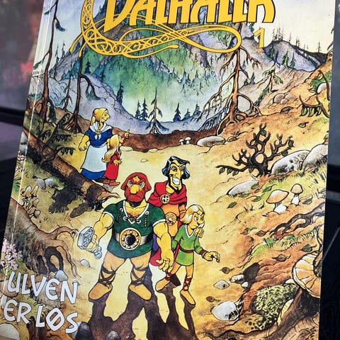 Tegneseriebogen indeholder tre historier: Ulven er løs.?Thors brudefærd og Odins væddemål. Udgivet af Carlsen, bogen er illustreret og samler de første dele af Valhalla-serien.