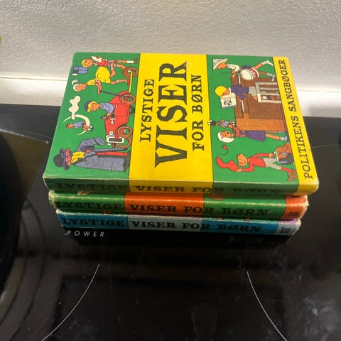 Politikens Lystige Børneviser bogsæt bestående af flere bind med børnesange. Bøgerne indeholder tekster og illustrationer til forskellige børneviser. Sættet er velegnet til børn og undervisning i musik og sang.