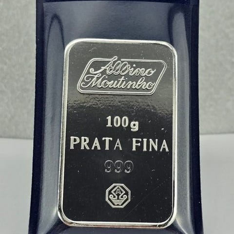 Ruwe, gietet sølvarmaturet (poured bar) fra en professionel raffineringproces, stammer fra det anerkendte portugisiske laboratorium Albino Moutinho.