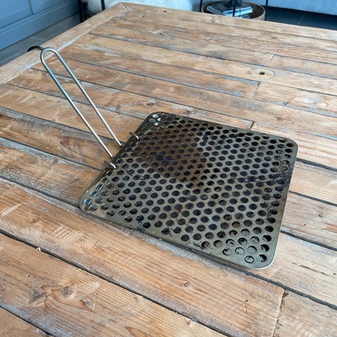 Brødristeren er blevet testet og fungerer som normalt. Siderne og den indre bagekammer er meget rene, ligesom området under krummebakken og varmeelementerne. På grund af alder er der synlig rust på dele af toplåget, hvilket er i overensstemmelse med langvarig brug og opbevaring. Vær venlig at gennemgå billederne omhyggeligt for at vurdere den kosmetiske tilstand.