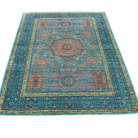 Oprindelse: Pakistan; model Mamlouk – Meisterstück – New; håndflettet tæppe af uld på bomuld i blå og grøn, størrelse ca. 198 × 156 cm, 21. århundrede, i meget god stand og professionelt rengjort. Klik på den blå "gå til varen" knap, for at købe eller byde på denne vare. Den samlede pris vil blive vist inden du afgiver dit bud.