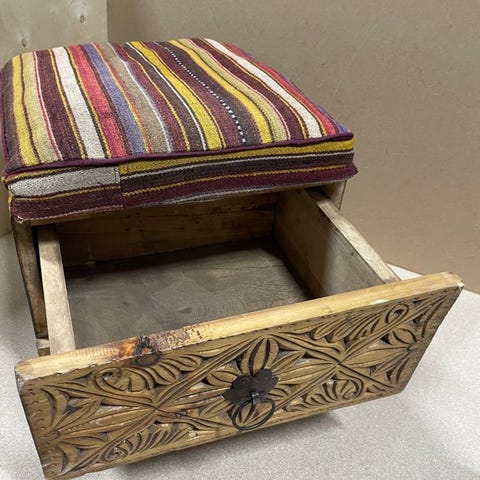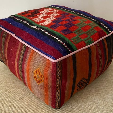 Vores puffer er et vidunderligt dekorativt produkt, som du nemt kan bruge i alle hjørner af dit hjem og din have. Størrelsen på puden er ca. 48 (bredde) x 48 (længde) x 25 (højde). Vores puffer er lavet af 100% ren uld fra gamle tæpper. Da de originale anatolske tæpper bruger naturlige farvestoffer og materialer, er hvert stykke unikt. Der kan ses forskelle i farver, naturlig slitage, asymmetriske mønstre og linjer – dette er naturen af gamle tæpper, hvilket gør dem unikke kun for dig. Vores puffer er håndlavede med den højeste kvalitet af syning, så du kan nyde dem i mange år. Det er op til dig at fylde den, du kan fylde den med skumstykke, formet skum, uld eller bomuld. Den sendes tom. Den vil blive afsendt