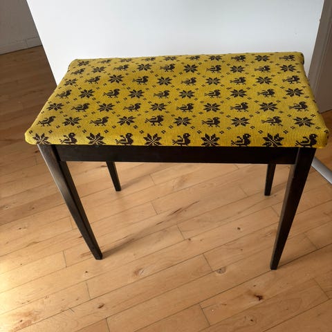 Funktion & Design: Møblet er designet til at opbevare sy- eller håndarbejdsartikler. Det har et hængslet låg, der åbner til et opbevaringsrum (muligvis med skuffer eller rum under, som ikke er synlige). Bordet står på fire smukt forarbejdede, detaljeret udskårne ben, der er forbundet med en elegant