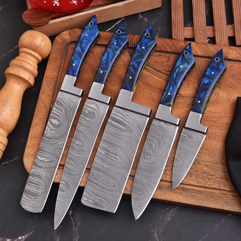 Bladet er omhyggeligt smedet og ætset for at fremhæve den lagdelte stålkonstruktion, hvilket giver fremragende skarphed, holdbarhed og kantbevarelse, egnet til både professionelle kokke og samlere.