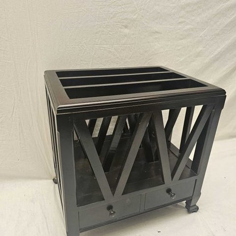 Strukturen er prydet med et centralt metalindslag, der fungerer som forbindelse og dekorativt detaljer, hvilket fremhæver en omhyggelig design med fokus på funktion og æstetik.