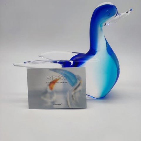 Det drejer sig om en tyr i Murano-glas af V. Nason, fremstillet ved hjælp af sommerso-teknikken.