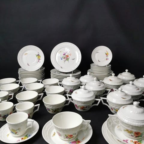 Velkommen! Vi præsenterer 10 serveringsfade med flet-mønster og sommerfuglblomster fra KPM Berlin.