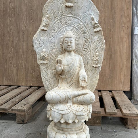 Japansk Meiji-periode femtilags granit Ikekomi’dôrô haveat lanterne, sekskantet og 128 cm høj, 57 cm bred, 54 cm dyb med en begravet base på 24 cm, i fremragende stand med en vejrpatina og inkluderer certifikat for ægthed. Klik på den blå "gå til varen" knap, for at købe eller byde på denne vare. Den samlede pris vil blive vist inden du afgiver dit bud.