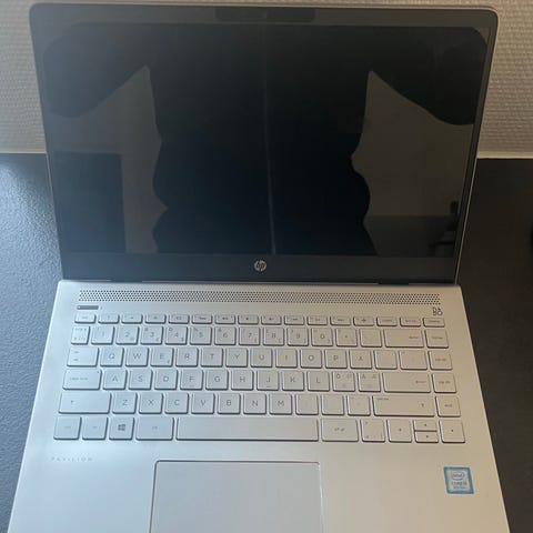 HP laptop i sølvfarvet materiale. Inkluderer tastatur og skærm. Velegnet til almindelig/skole computerbrug.