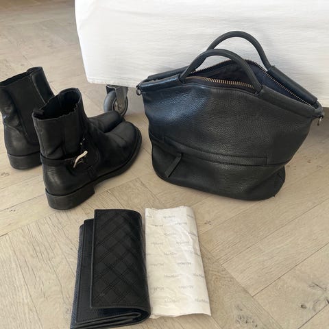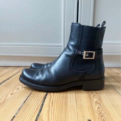 OM VAREN: Sorte biker støvler fra Prada.