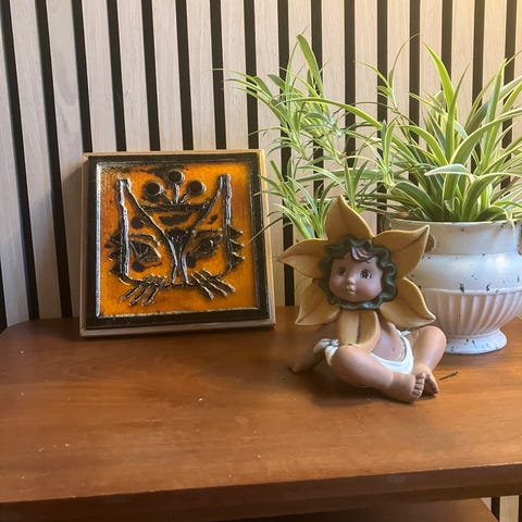 Stil: Karakteristisk krakeleret glasur og indrammet i træ