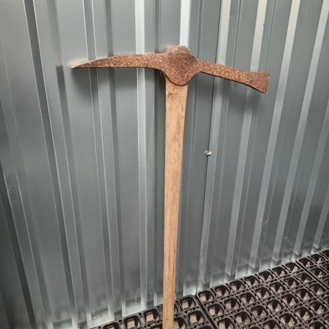 Sælges: en kraftig hakke med stempel "DS II - PRIM" (?). Ingen synlige slidspor.