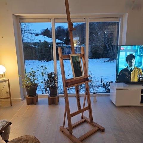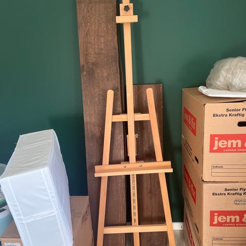 Staffeli i træ med justerbar højde og støtte til lærred. Velegnet til maleri og tegning, kan bruges af både amatører og professionelle kunstnere.