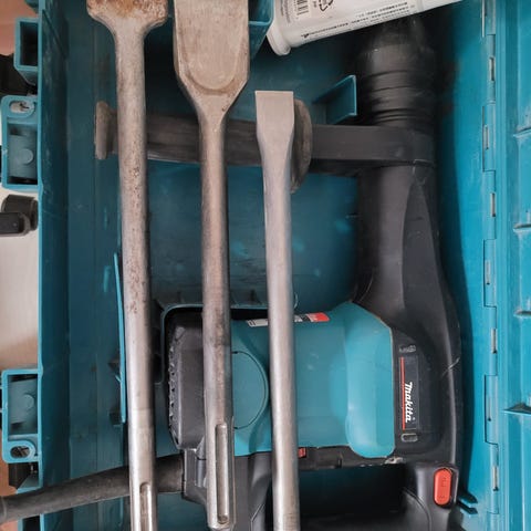 1450 w hammer med div mejsler, en eller 2 helt nye mejsler , MAX brugt 20 timer,