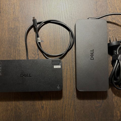 Der medfølger original strømforsynings samt CalDigit Thunderbolt 5 kabel (flettet).