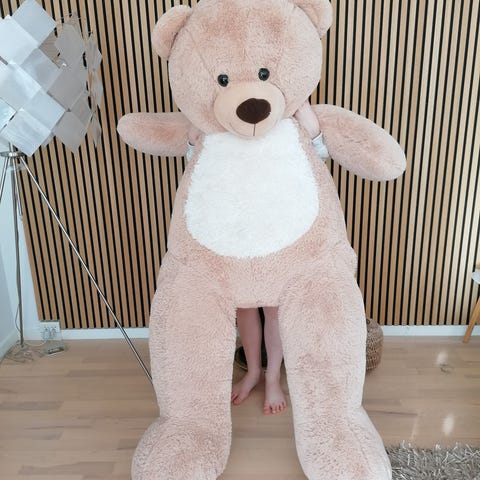Kæmpebamse, Jeg sælger denne bamse til 200 kr. Den er næsten som ny, eftersom den ikke er blevet leget med, men har været en pyntebamse.