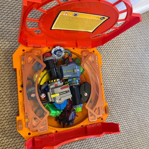 Jeg har til salg et BeyBlade - sæt. Det består af et Beystadium og ekstra 21 dele. Alle delene kan ses på billederne. De er i rigtig god stand. Fremstillet i robust plast, der kan tåle hårde kampe