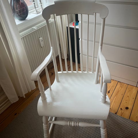 Flot hvidmalet Retro gyngestol med høj ryg i træ