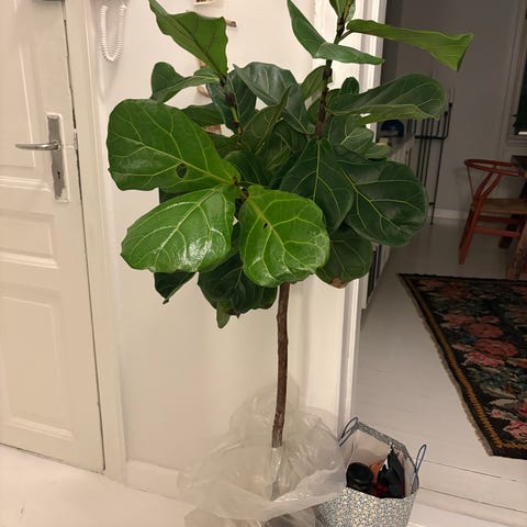 Stor, harmonisk violin figen i god vækst. Ny jord sommeren 2025. Pris er med potte og underskål.