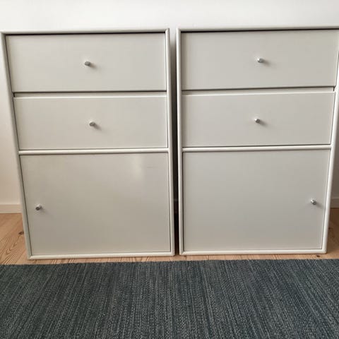 Pæn og velholdt Montana reol - incl ophæng beslag. Farve White 01.